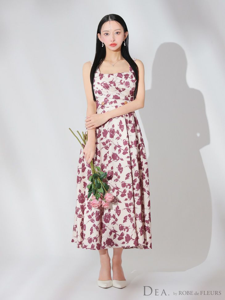 4. [DEA.byROBEdeFLEURS/ディアバイローブドフルール] 高級スクエアネックフラワーウエストベルト切替Aラインロングドレス
