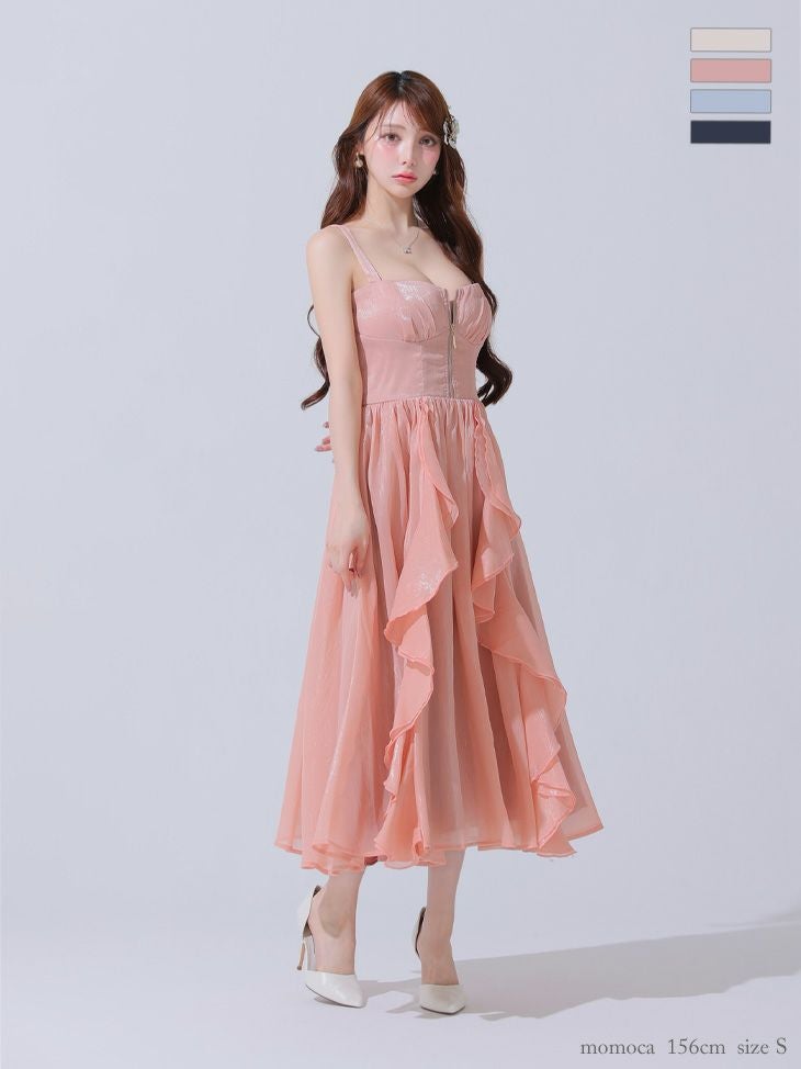 4. [DEA.byROBEdeFLEURS/ディアバイローブドフルール] 高級 キャミソール サテン ジップ 背中魅せ フリル Aラインロングドレス