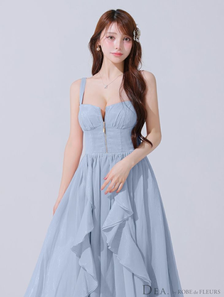 ピュアな可愛さを演出♡ [DEA.byROBEdeFLEURS/ディアバイローブドフルール] 高級 キャミソール サテン ジップ 背中魅せ フリル Aラインロングドレス