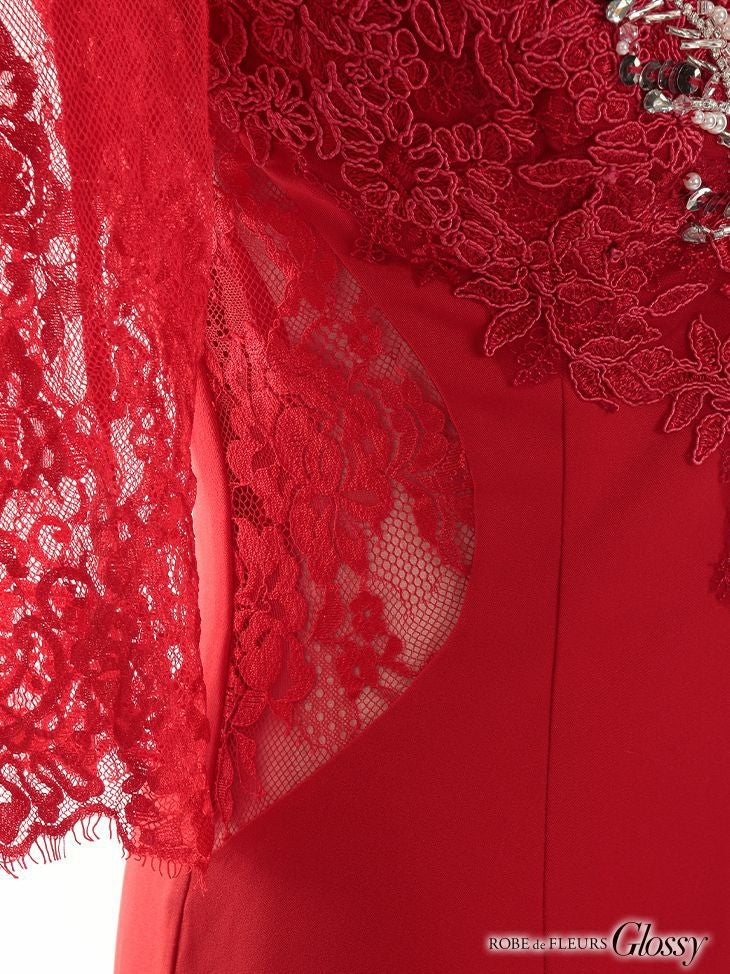 5. SALE [ROBEdeFLEURSGlossy/ローブドフルールグロッシー] 高級バストクロスビジューサイドジッパーレース袖ありタイトロングドレス