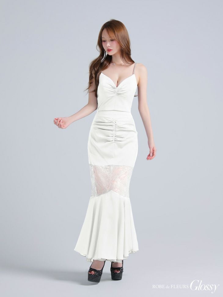 4. [ROBEdeFLEURSGlossy/ローブドフルールグロッシー] 高級 キャミソール 谷間魅せ サテン セットアップ レース切替 マーメイドロングドレス