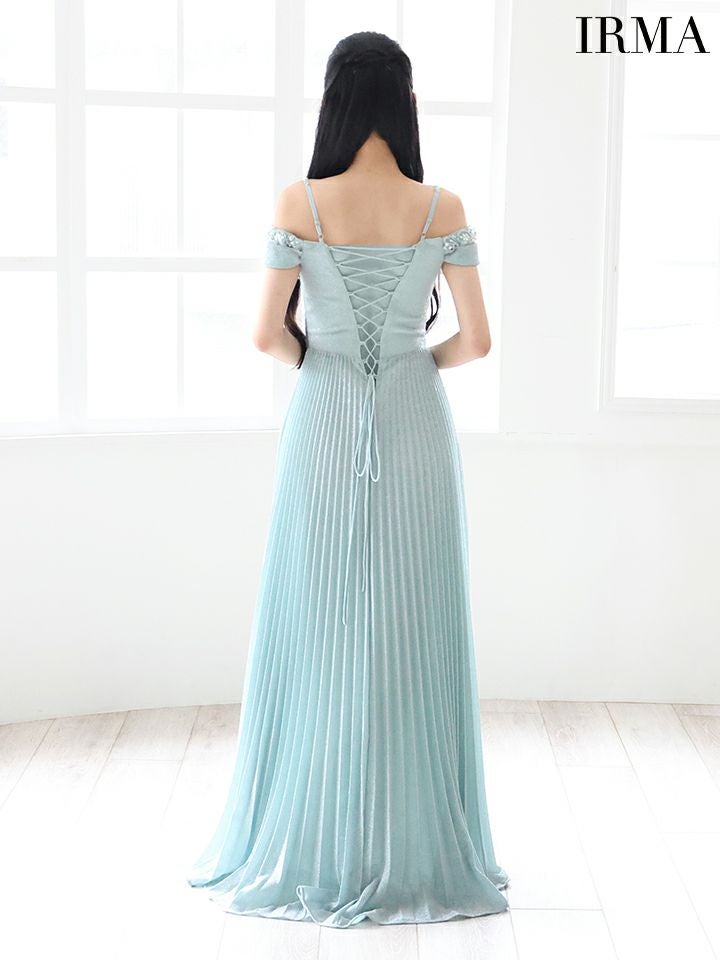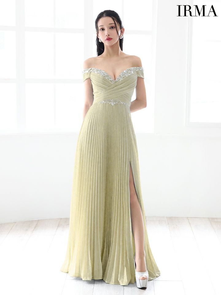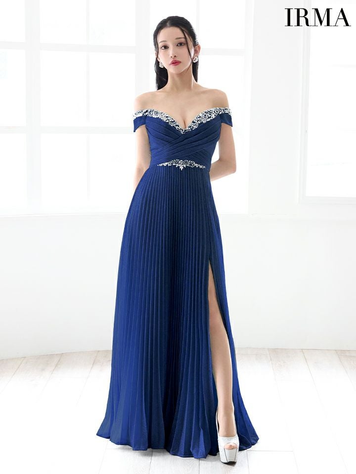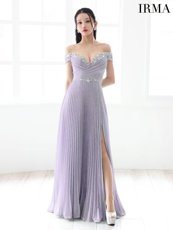 5. [IRMA/イルマ] 高級ラメニットオフショルダーフラワービジューAラインロングドレス