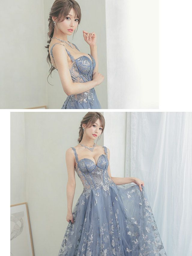 LA直輸入 バタフライモチーフコルセット風デザインラメチュールキャミソールロングバースデードレス (Mサイズ~Lサイズ) (めぐりっぷ キャバドレス着用)