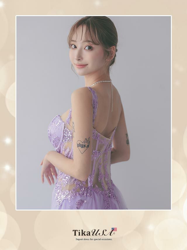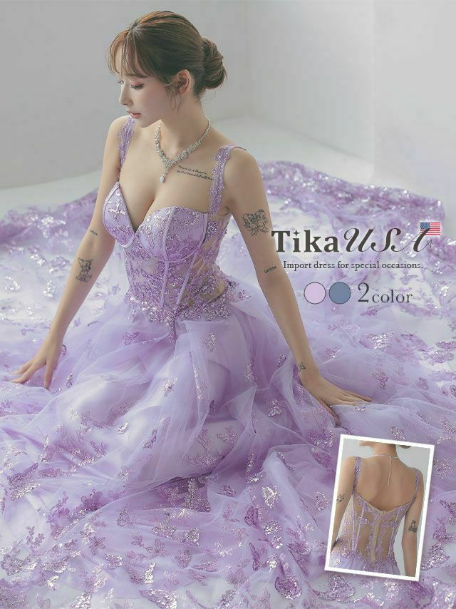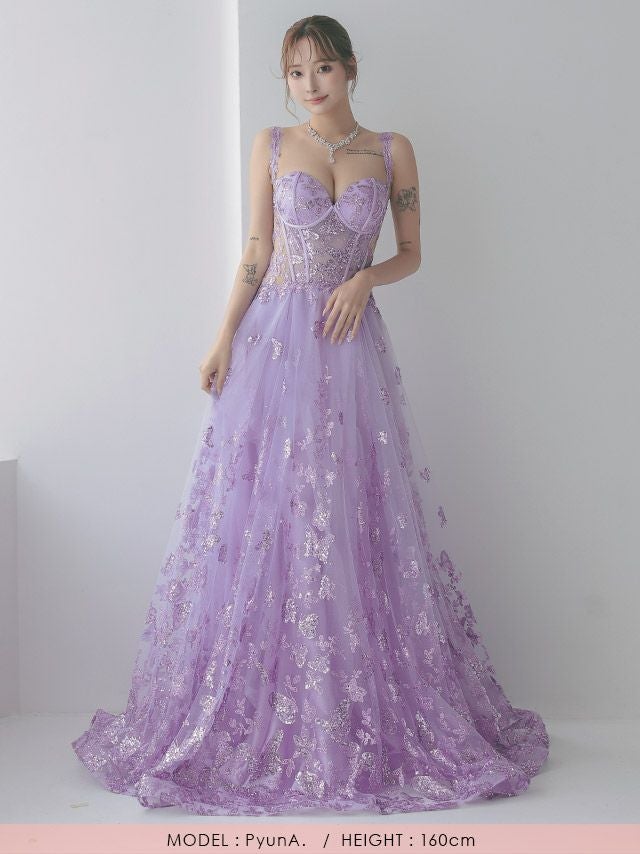 3. [LA直輸入] バースデー バタフライモチーフコルセット風デザインラメチュールキャミソールAラインロングドレス (Mサイズ~Lサイズ) (めぐりっぷ/キャバドレス着用)