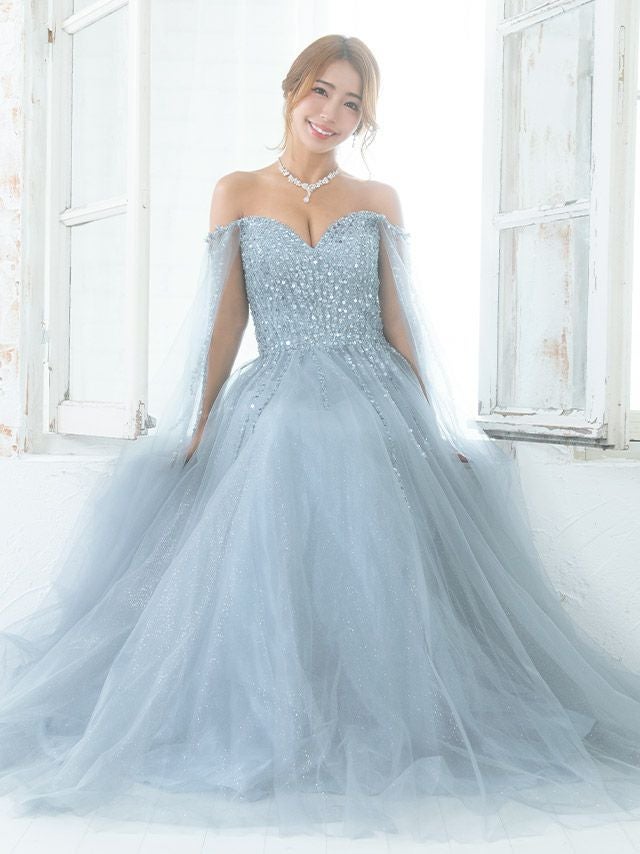 大人感溢れるお洒落なくすみブルーが素肌を美しく魅せ、