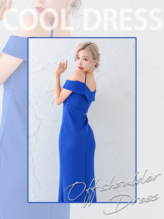 可愛くデコルテ魅せ♪ 安い Aラインロングドレス ホステス シンプル 大人 上品 背中魅せ マーメイド スリット 肩出し (せいせい着用)