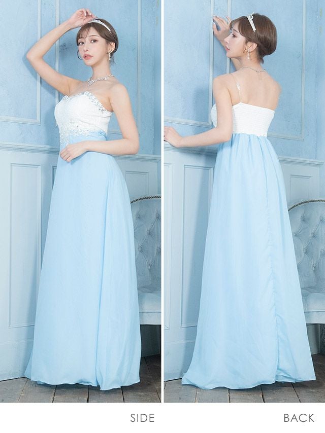 女神のような可愛さを放つ♪ ベアビジュー切り替えシフォン Aラインロングドレス (Sサイズ~XXLサイズ) (明日花キララ/キャバドレス着用)
