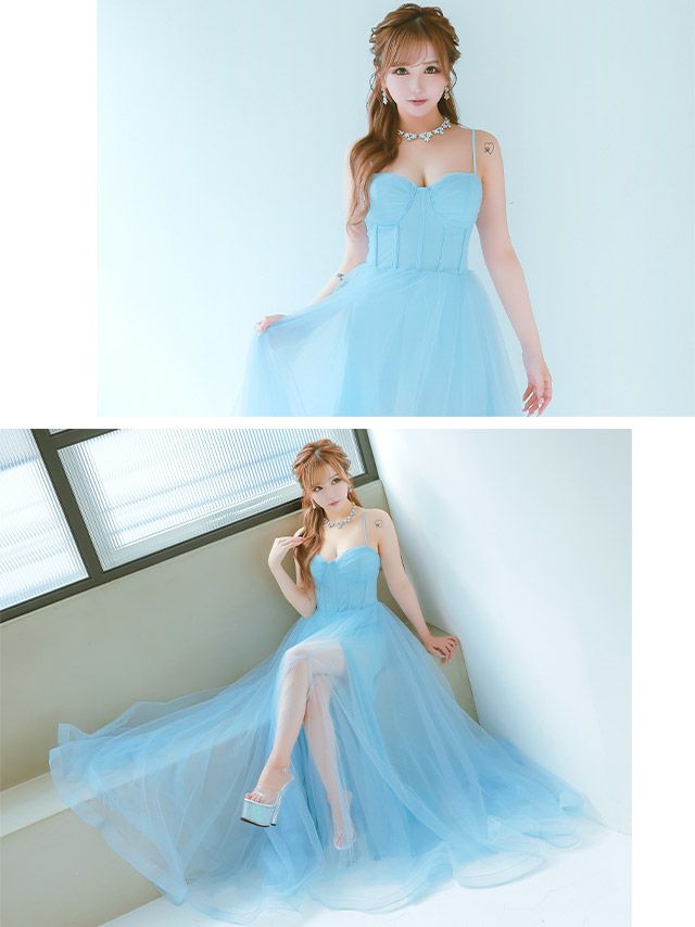 4. バースデー ハートカットコルセットキャミソールゴージャスチュール Aラインロングドレス (Sサイズ~XLサイズ) (りせり/キャバドレス着用)