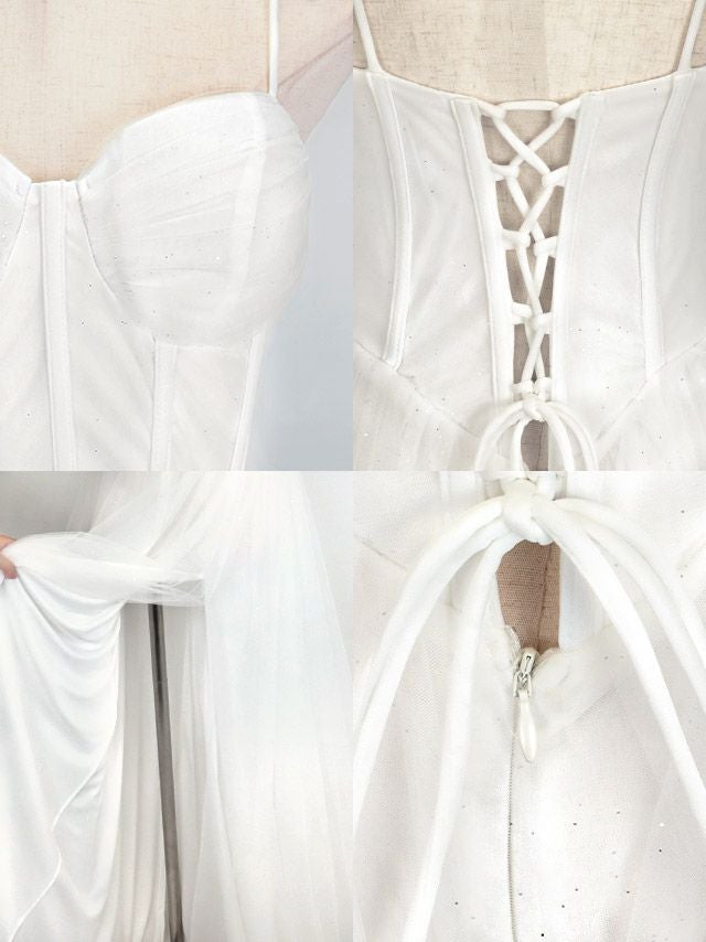 ハートカットコルセットキャミソールゴージャスチュールスリットAラインロングバースデードレスの商品詳細1
