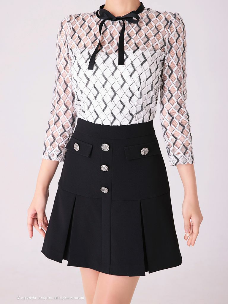 6. SALE [Andy/アンディ] 高級レース袖ありネックリボンミニフレアミニドレス