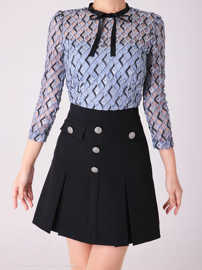 5. SALE [Andy/アンディ] 高級レース袖ありネックリボンミニフレアミニドレス