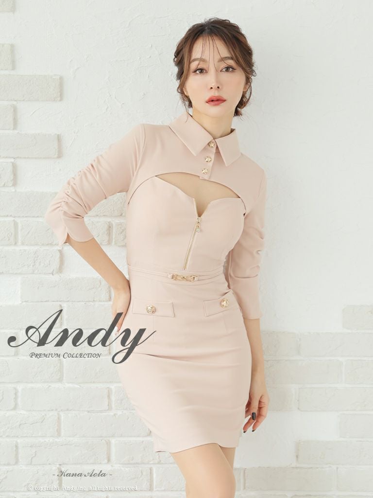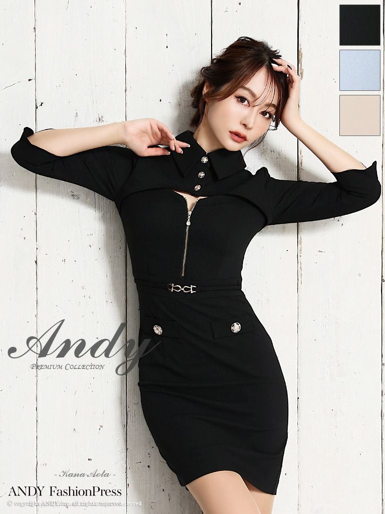 キャバドレス Andy アンディ 高級ワンカラー襟デザインジップ袖ありタイトミニドレス