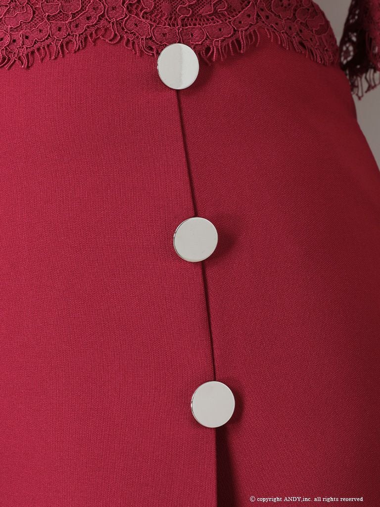 ガーリー&セクシーな欲張りドレス☆ [an/アン] 高級袖ありシアースカラップレース切り替えボタンデザインボックスプリーツフレアミニドレス