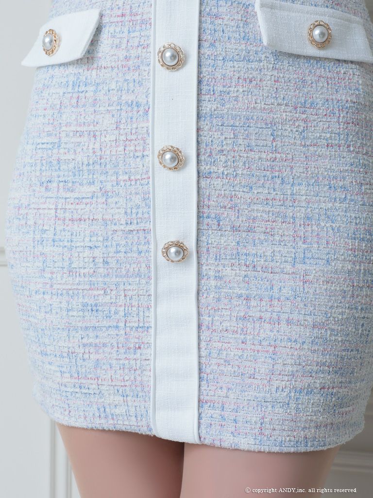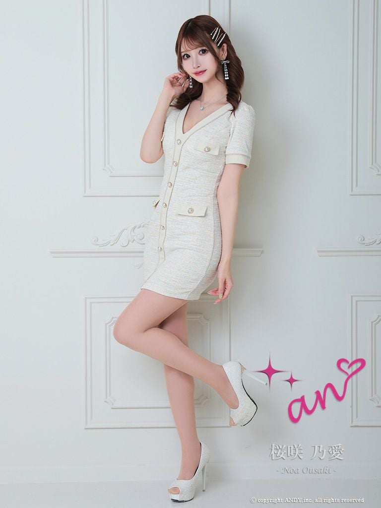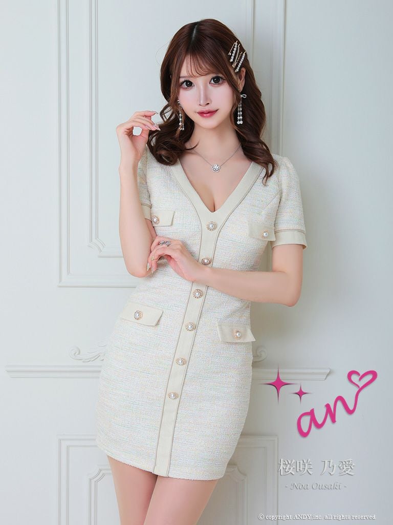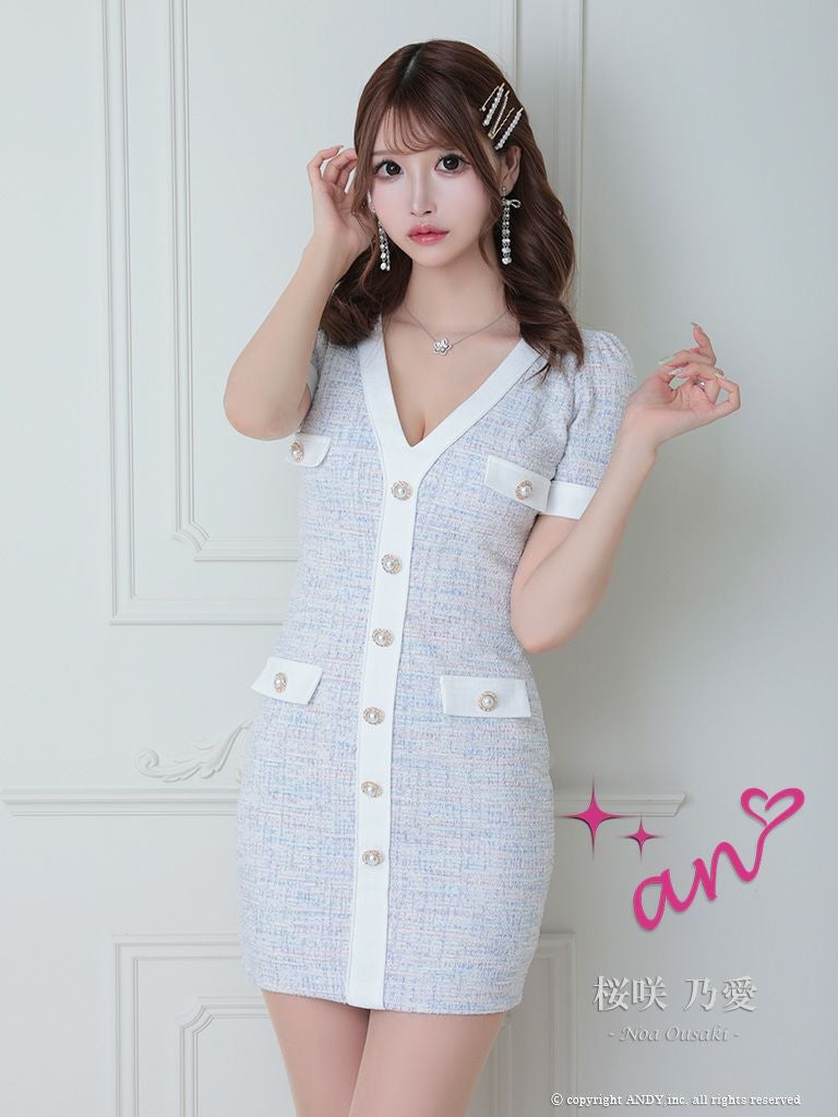 5. [an/アン] 高級ガーリーツイードフロントボタン半袖タイトミニドレス