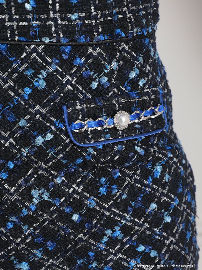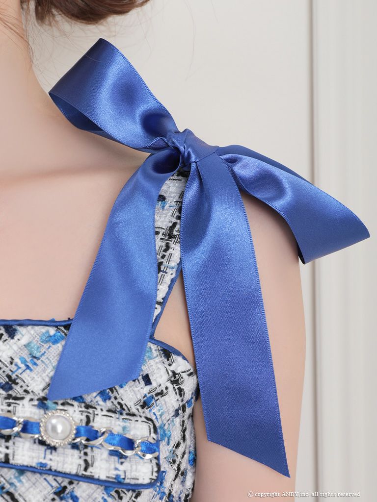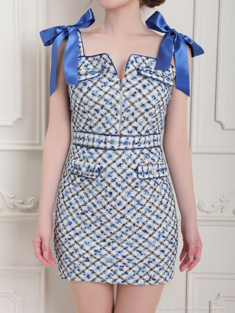 キャバドレス Andy アンディ 高級ツイードリボン付きジップノースリーブタイトミニドレス