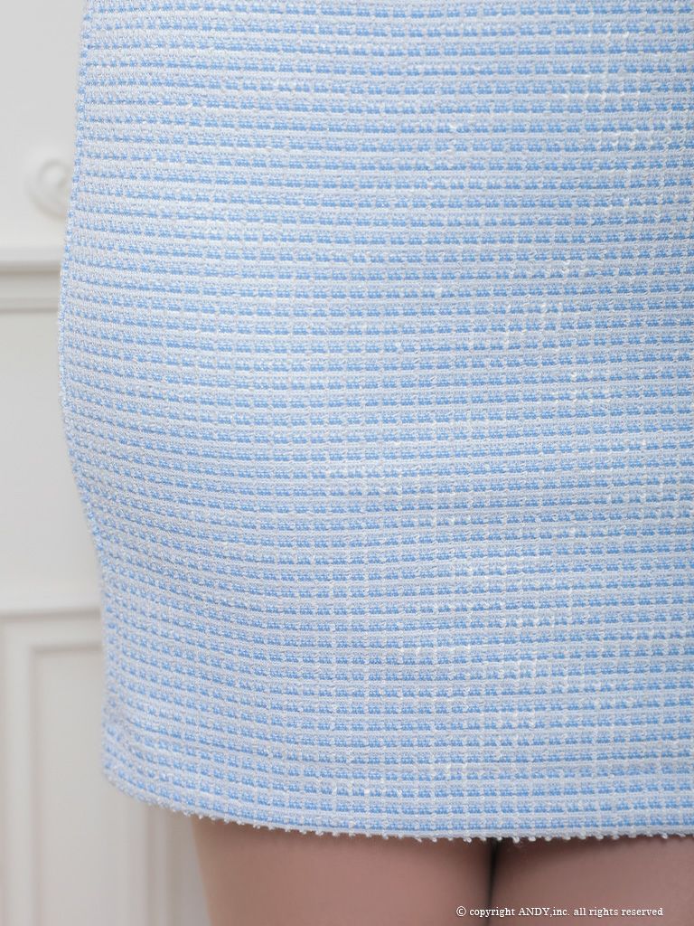 5. [an/アン] 高級 ノースリーブ バストカット ジップ リボン ツイード 谷間魅せ タイトミニドレス
