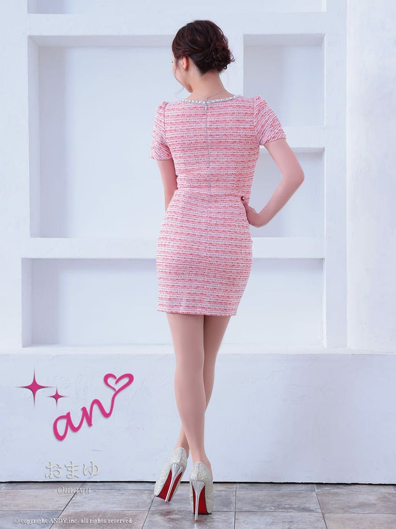キャバドレス Andy アンディ 高級半袖ジップデザインツイードポケットバストカットタイトミニドレス