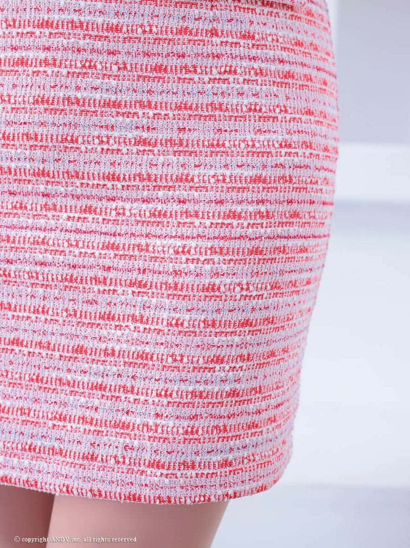 4. [an/アン] 高級 半袖 ジップデザイン ツイード ポケット バストカット タイトミニドレス