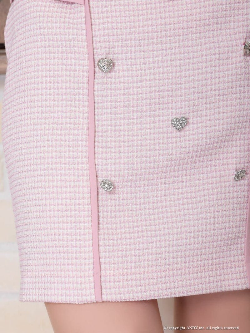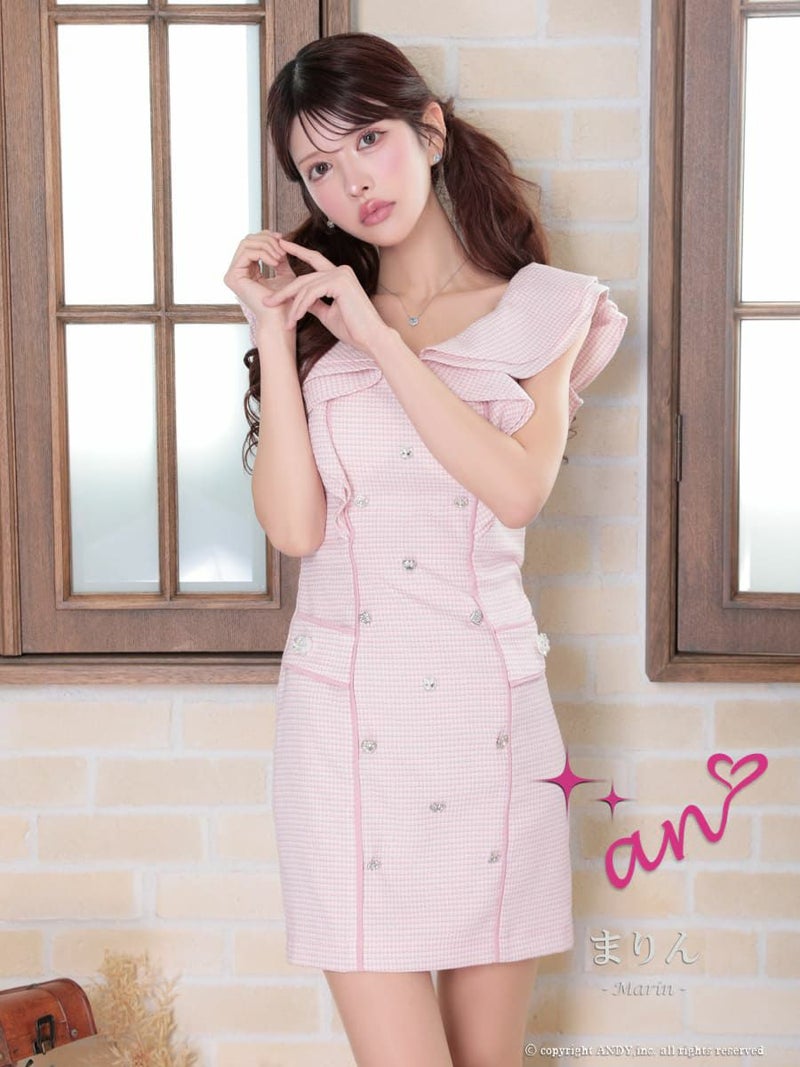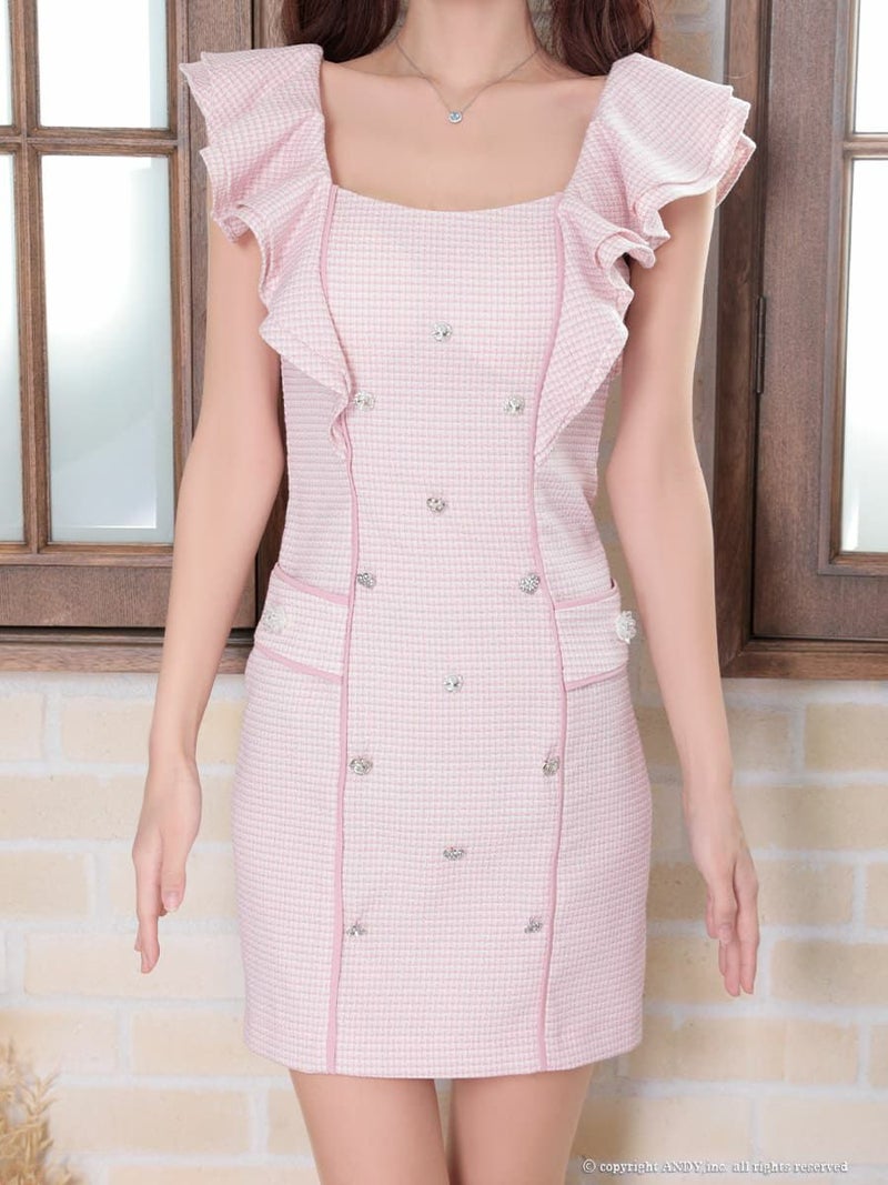 キャバドレス Andy アンディ 高級 ノースリーブ フリル ツイード ビジュー ポケット ハート ボタン タイトミニドレス