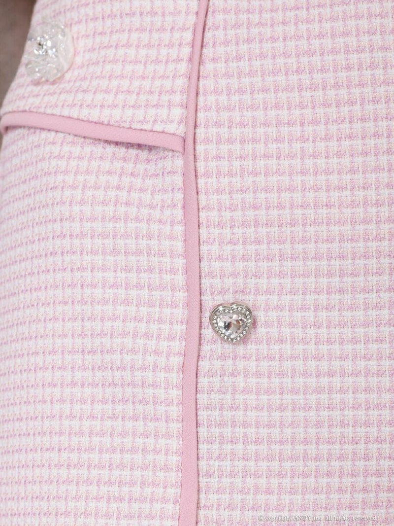5. [an/アン] 高級 ノースリーブ フリル ツイード ビジュー ポケット ハート ボタン タイトミニドレス