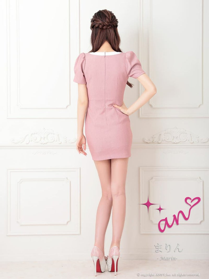 キャバドレス an アン 高級 半袖 スクエアネック ジップ バイカラー ウエストベルト タイトミニドレス
