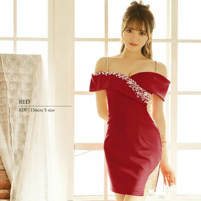 4. [Angel-R/エンジェルアール] 高級オフショルダービジューサイドメッシュカットくびれタイトミニドレス