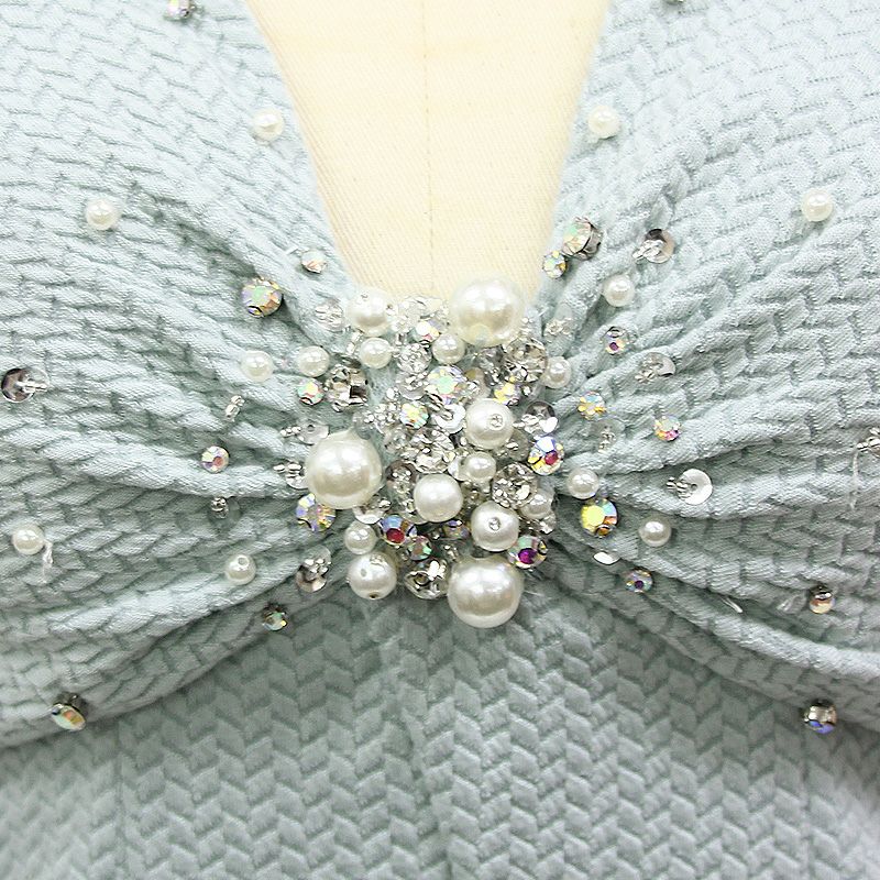 6. [Angel-R/エンジェルアール] 高級ホルターネック襟付きバストパールビジューウエストカットタイトミニドレス
