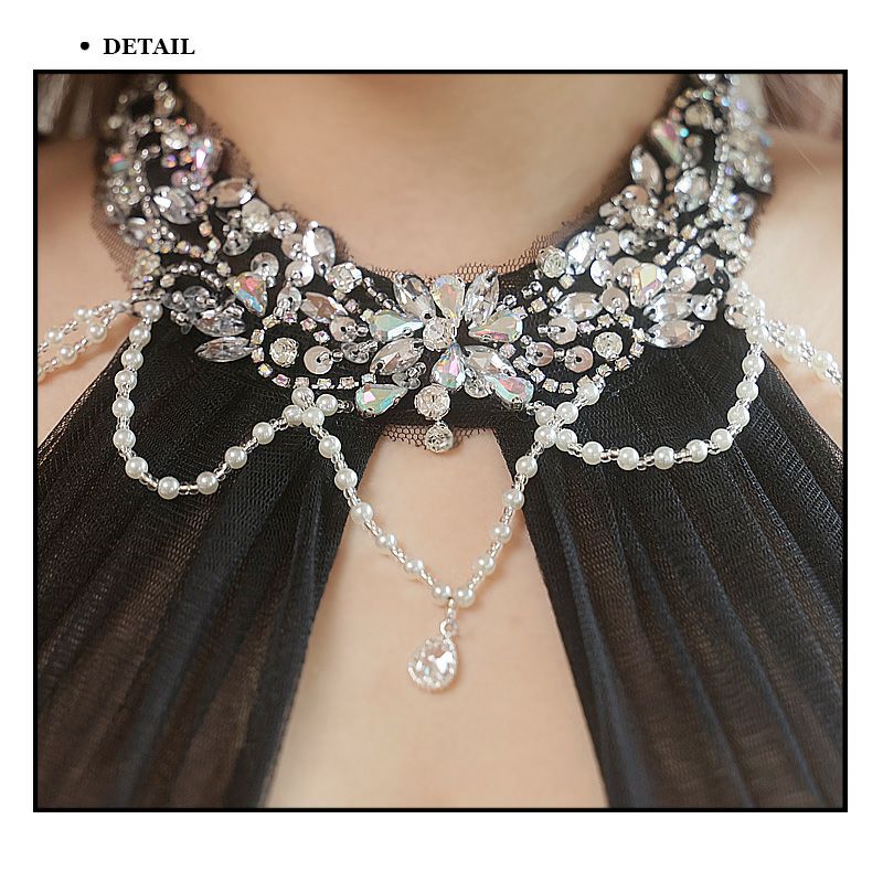 パールチェーンが高級感溢れる☆ [Angel-R/エンジェルアール] 高級 ビジュー ホルターネック くびれ シフォン パールチェーン バストカット 谷間魅せ タイトミニドレス