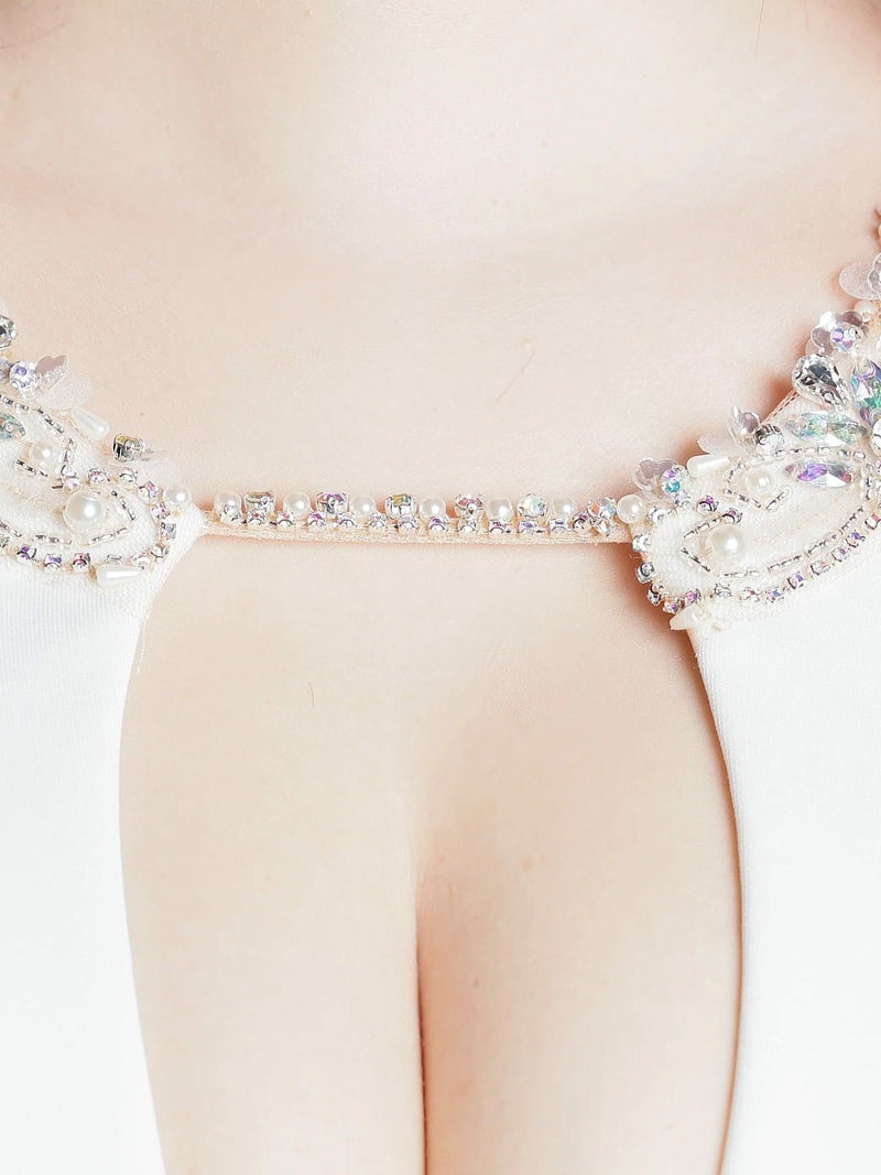 ボディラインを強調するデザイン☆ [Angel-R/エンジェルアール] 高級 ホルターネック フラワービジュー くびれ バストカット 谷間魅せ タイトミニドレス