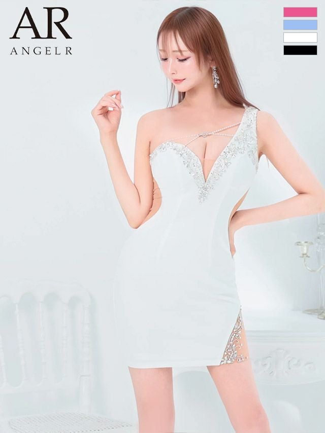 キャバドレス ミニドレス Angel-R エンジェルアール  高級ワンショルダーハートチャームビジューくびれタイトミニドレス