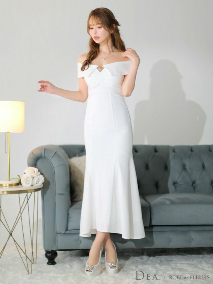 4. [DEA.byROBEdeFLEURS/ディアバイローブドフルール] 高級オフショルダーワンカラーマーメイドロングドレス