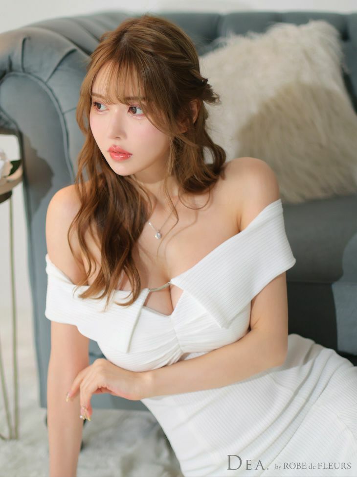 リブニット生地で着心地◎ [DEA.byROBEdeFLEURS/ディアバイローブドフルール] 高級オフショルダーワンカラーマーメイドロングドレス