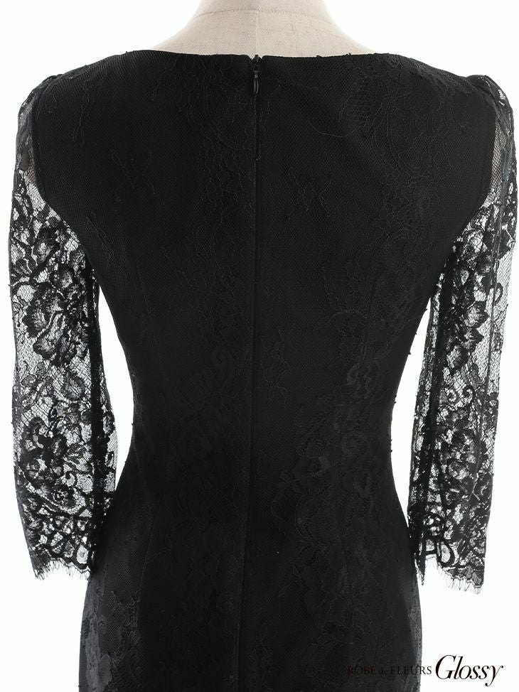 6. [ROBEdeFLEURSGlossy/ローブドフルールグロッシー] 高級 総レース バストシースルー ビジュー 袖あり 谷間魅せ タイトミニドレス
