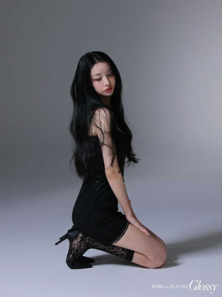 5. [ROBEdeFLEURSGlossy/ローブドフルールグロッシー] 高級 キャミソール バストシースルー 谷間魅せ ラメチュール セクシー タイトミニドレス