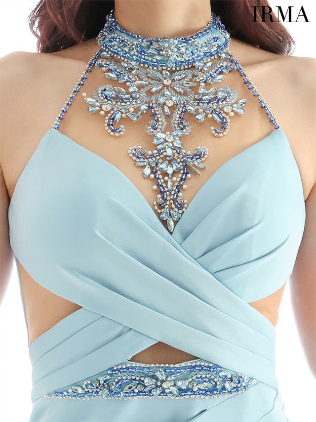 煌めくビジューがゴージャス☆ [IRMA/イルマ] 高級ネックビジューバストクロスホルターネックシアーくびれタイトミニドレス