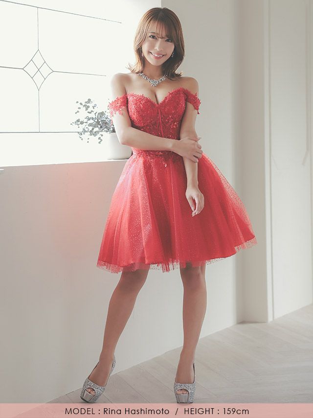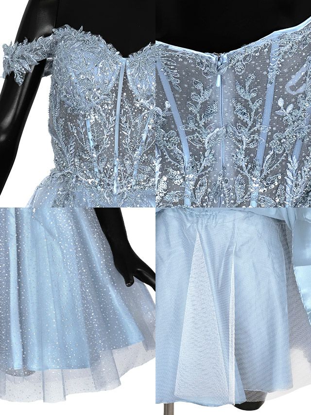 [LA直輸入] バースデー シアーコルセット刺繍デザインラメチュール2Wayオフショルダーフレアミニドレス (XSサイズ~Lサイズ) (浦西ひかる/キャバドレス着用)