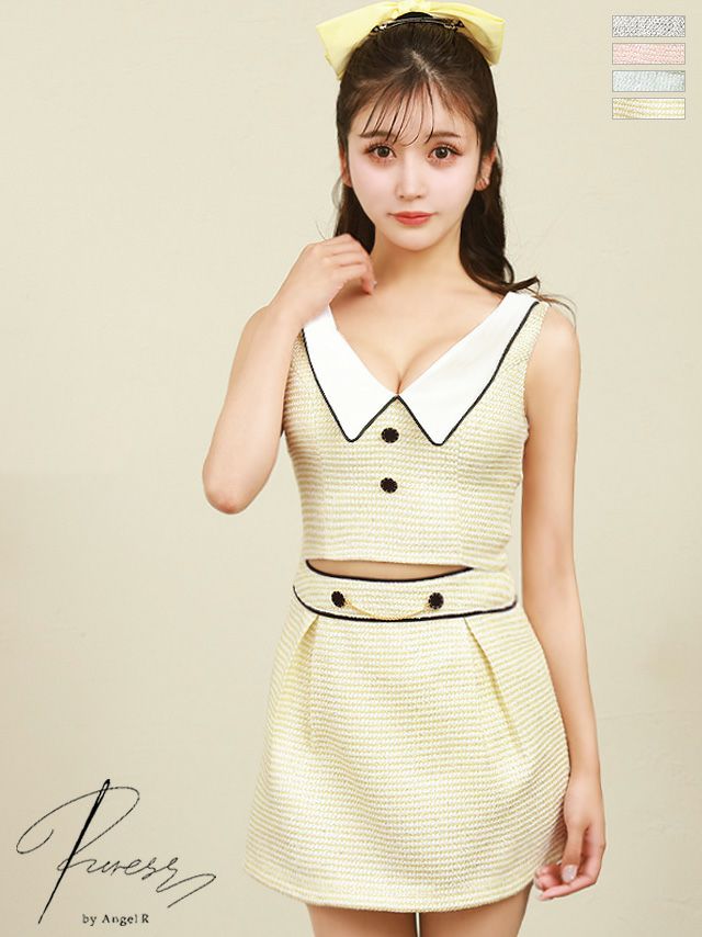 キャバドレス ミニドレス [PURESS/ピュアレス] 高級ノースリーブベルトセパレートセットアップツイードタイトミニドレス