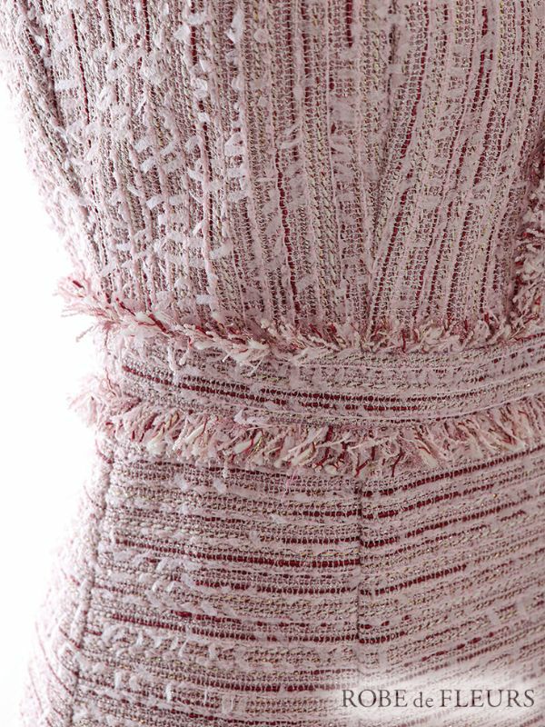 4. [ROBEdeFLEURS/ローブドフルール] 高級 ラメツイード ビジュー 襟付き フリル袖 ノースリーブ 台形 ワンピース フレアミニドレス