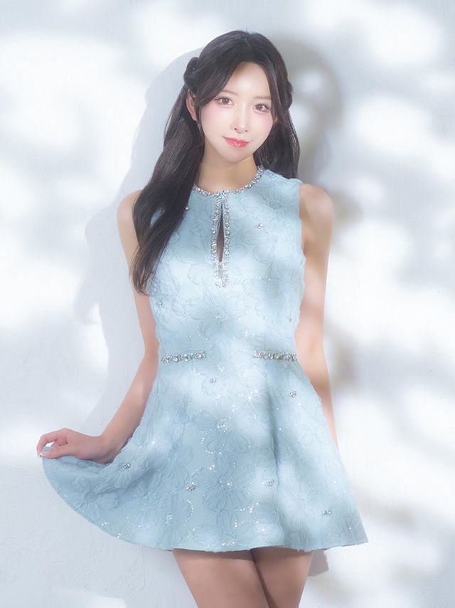 上品な可愛さをアピールできる♡ [ROBEdeFLEURS/ローブドフルール] 高級 ブランド Aラインミニドレス ノースリーブ フラワーデザインレース ビジューライン (ゆいぴす着用)