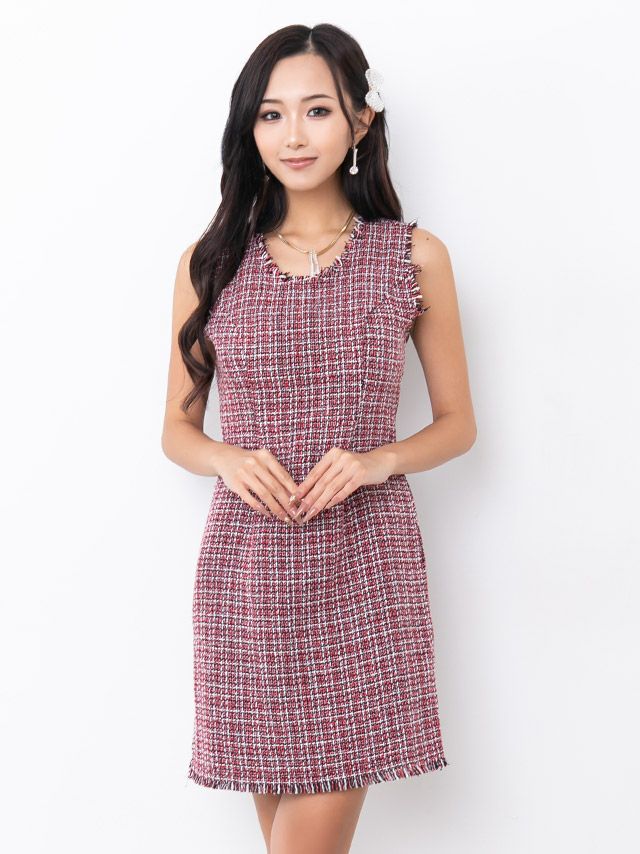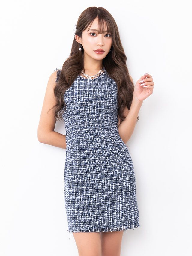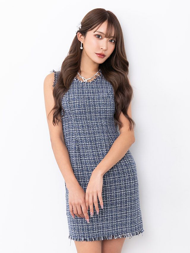 4. ノースリーブツイード裾フリンジタイトミニドレス (ちぴたん着用)