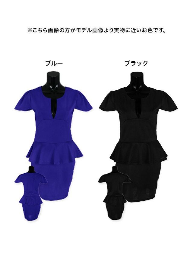 ワンカラーペプラム半袖タイトミニドレスのカラバリ画像