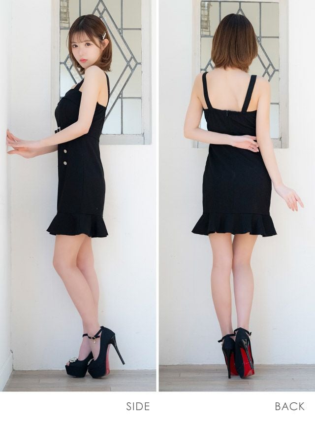5. [SALE] ウエストベルト付きキャミソールダブルボタンワンカラー裾フリルタイトミニドレス (Sサイズ~XLサイズ) (せいせい/キャバドレス着用)