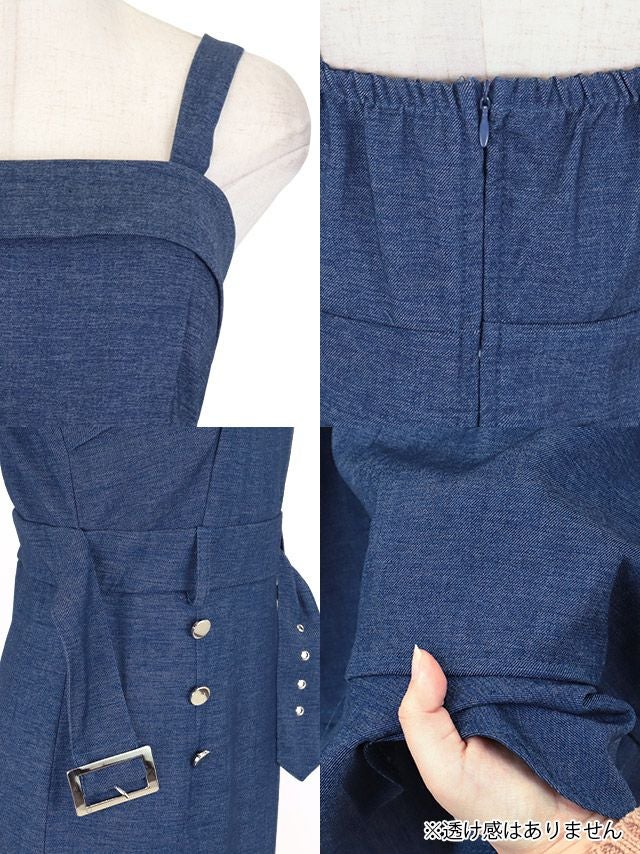 カジュアルな着こなしを楽しめる♪ [SALE] ウエストベルト付きキャミソールダブルボタンワンカラー裾フリルタイトミニドレス (Sサイズ~XLサイズ) (せいせい/キャバドレス着用)