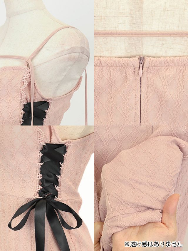 キャミソール デコルテコードリボン 谷間見せ サイドレースアップ 裾フリル タイトミニドレスのイメージ画像4