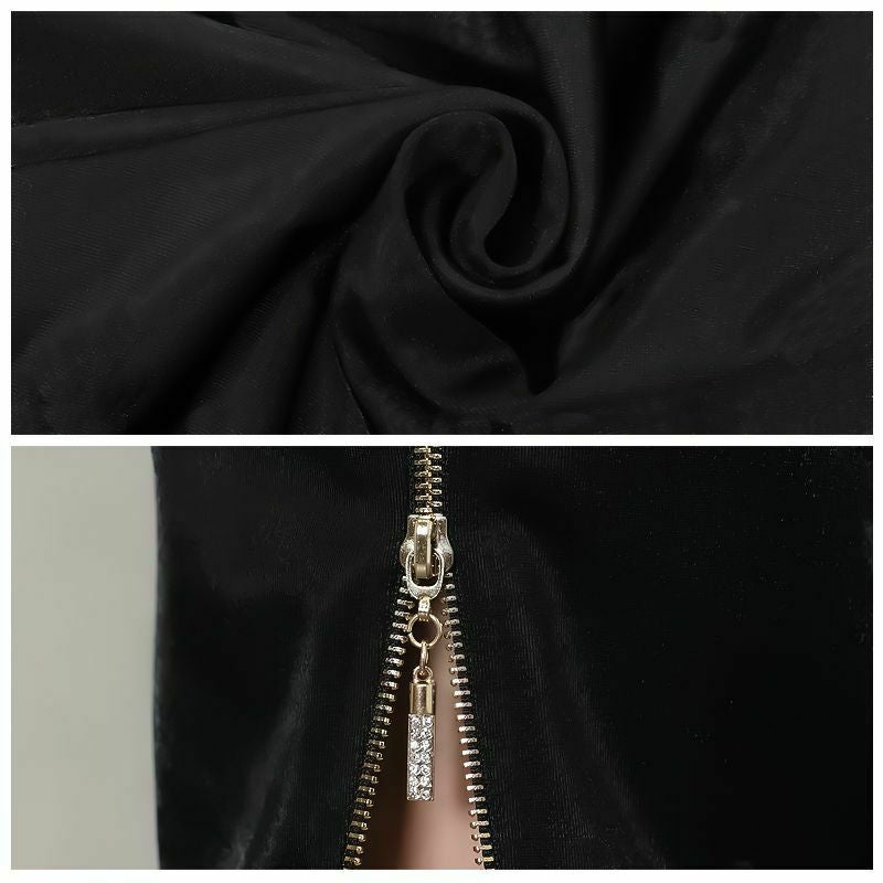 5. [Veautt/ヴュート] 高級バストクロスタックチェーンウエストカットノースリーブビジューサテン膝丈タイトドレス