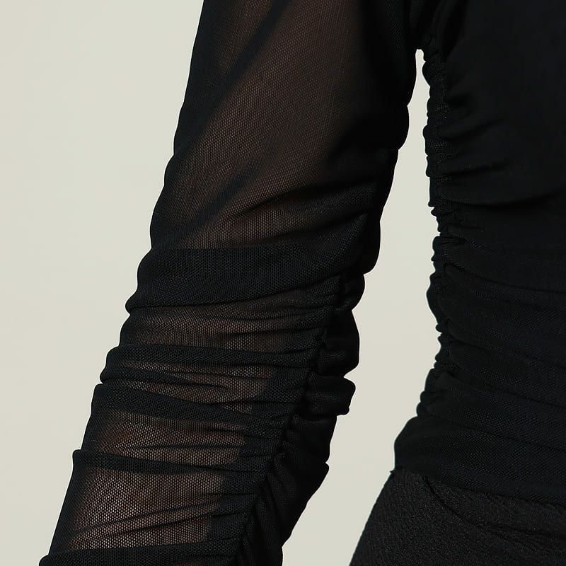 肩魅せと透け感でセクシーなドレス☆ [Veautt/ヴュート] 高級オフショルダージップシースルー長袖 袖あり膝丈タイトドレス