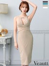 キャバドレス 膝丈ドレス Veautt/ヴュート 高級ホルターネックウエストカットサイドジップワンカラータイト膝丈ドレス