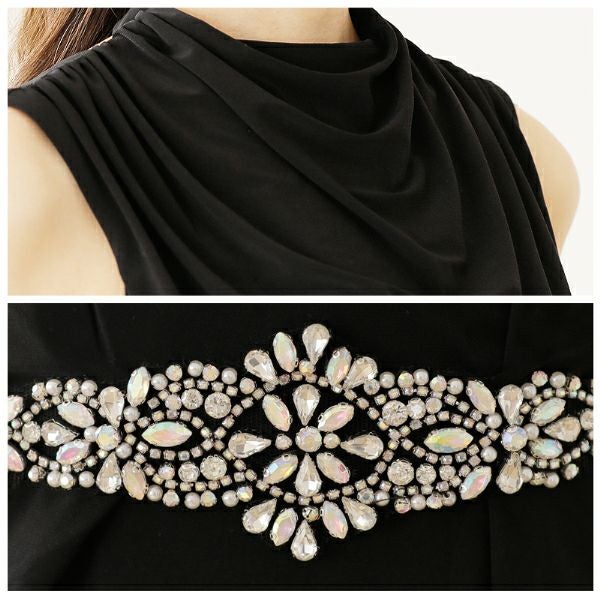 足長効果を叶える☆ SALE [Veautt/ヴュート] 高級ウエストビジューバックVカットノースリーブ膝丈ワンピースタイトドレス