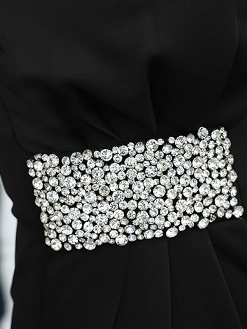 5. [Veautt/ヴュート] 高級2wayベアトップビジュータックデザインタイト膝丈ドレス
