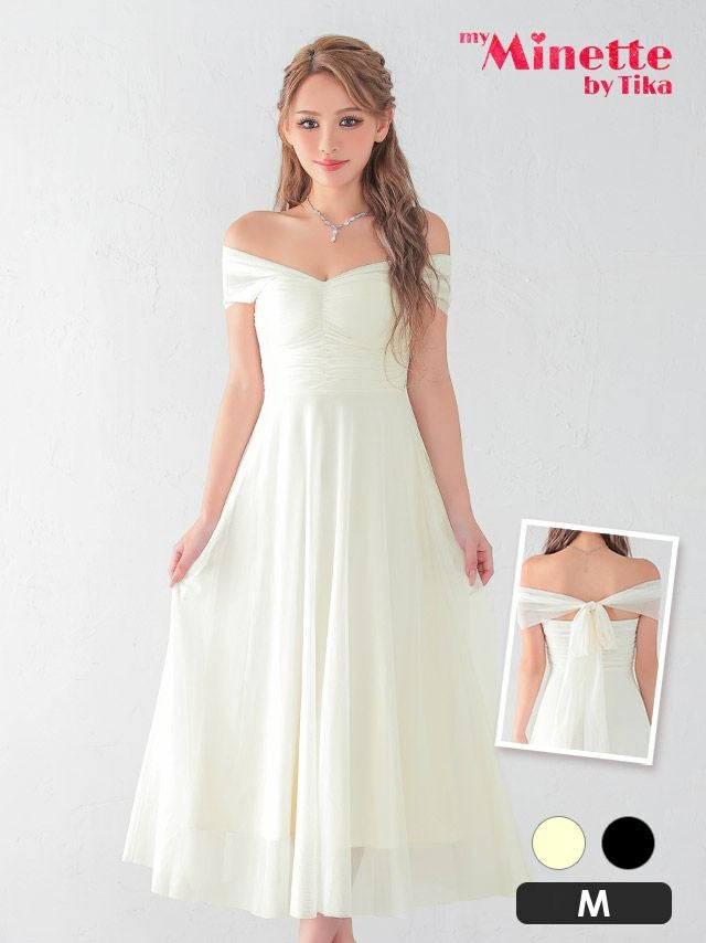大人の可愛さをふんだんに集めた♪ 安い Aラインロングドレス ホステス 谷間 オフショルダー シンプル 大人 上品 背中魅せ ストレッチ バックリボン キャバドレス (波北かほ着用)
